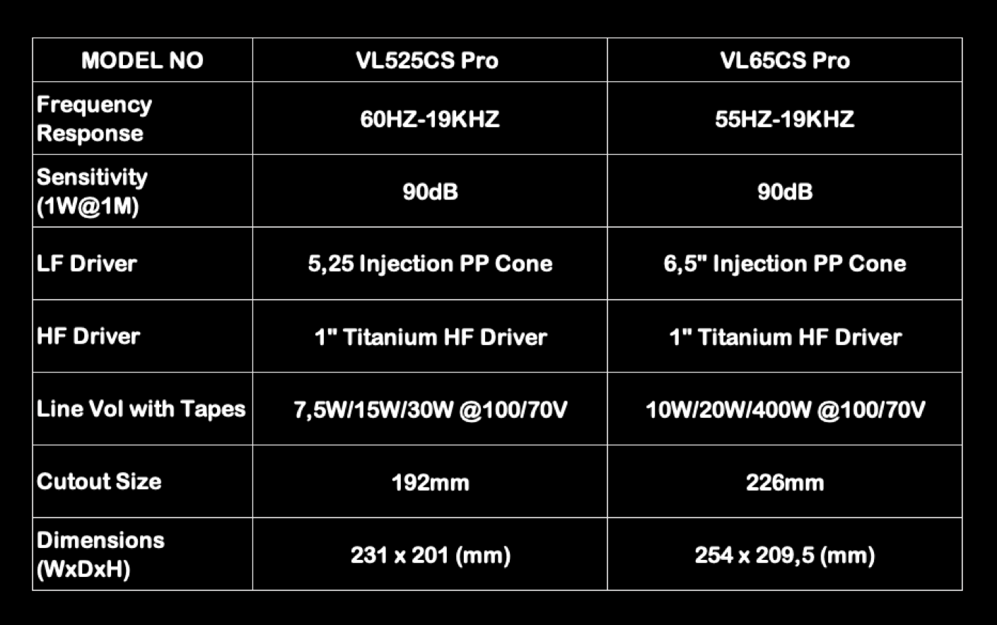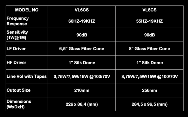 VLxxCS PRO is Commercial & Residence Premium Level in-ceiling speakers with black metal housing, PP Cone dedicated woofer + 1 Inch Titanium Tweeter divide by Hi-Fi level Crossover, supply clean sound for background music, bar and meeting room